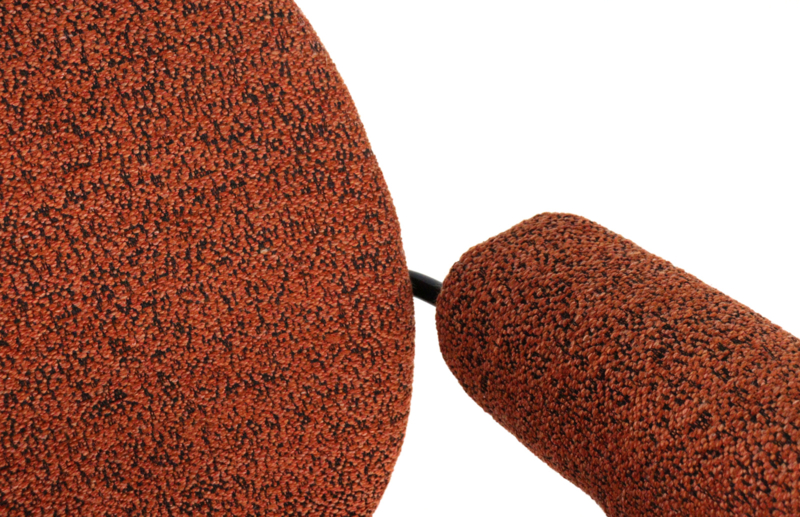 De stoel is opnieuw professioneel bekleed in een warme, rijke stof die perfect past bij de zachte rondingen van het ontwerp. Het slanke metalen frame werd bovendien opnieuw gespoten, waardoor de fauteuil weer een frisse, verzorgde uitstraling heeft zonder zijn authentieke karakter te verliezen.
