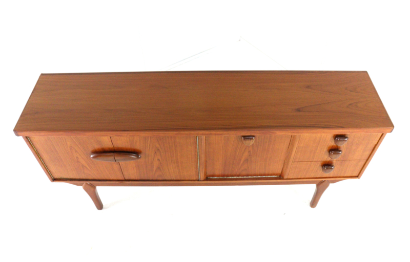 Het onderstel is zeer fraai vormgegeven en het gehele formaat is al even mooi, met zijn 168,5 meter is dit pracht meubel bijna bij iedereen wel te plaatsen als mooi dressoir of tv meubel.
