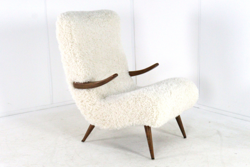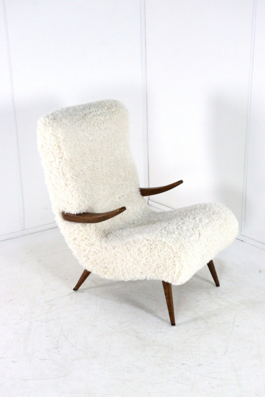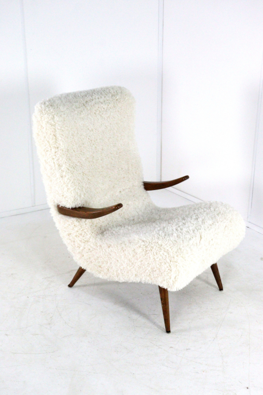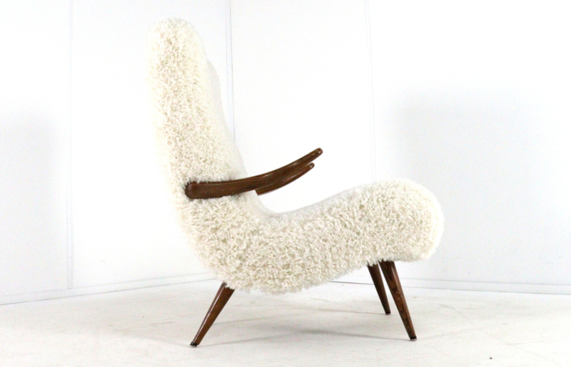 Het mid-century ontwerp is opnieuw gestoffeerd met de opvallende stof, type Doodle, in de kleur "Cream" die zowel stijlvol als zeer modern is.