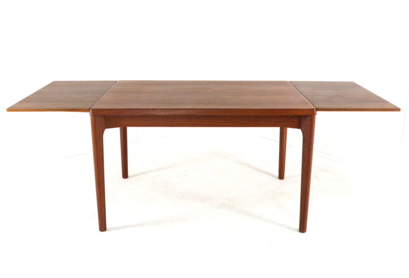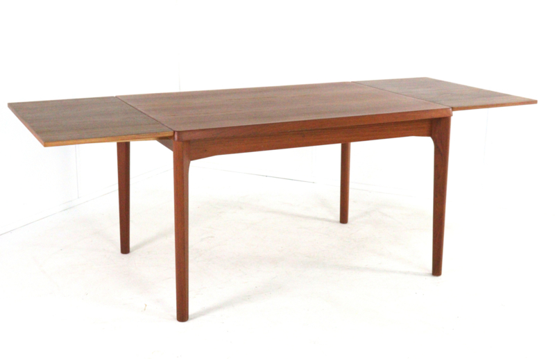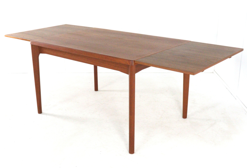Zeer fraai afgewerkte en uitgevoerde tafel, in geliefde kleur en houtsoort (teak), en voorzien van fraaie details.