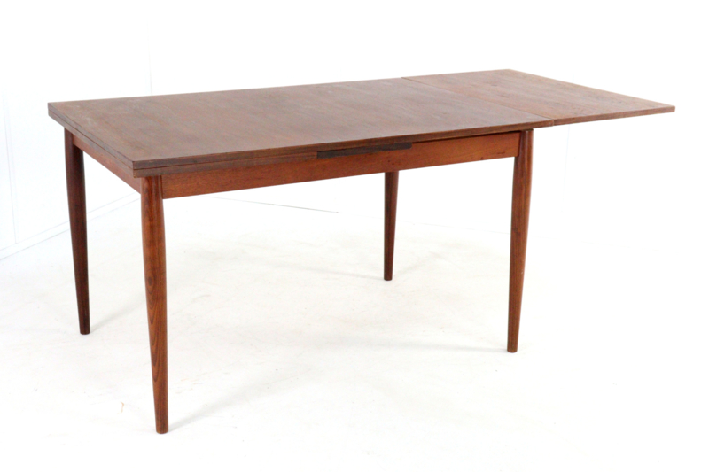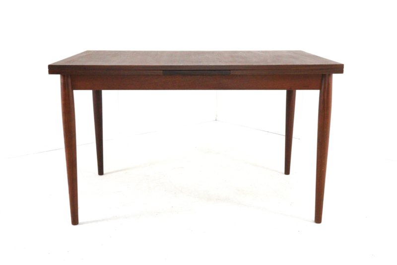 De tafel kan verlengd worden door een vernuftig systeem. Onder het tafelblad bevind zich aan weerskanten een uitschuifbaar stuk, door dit onder het blad vandaan te trekken kan het blad worden uitgeschoven. Zo verleng of verkort je jouw eetkamertafel in een handomdraai.