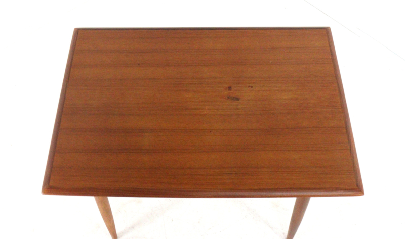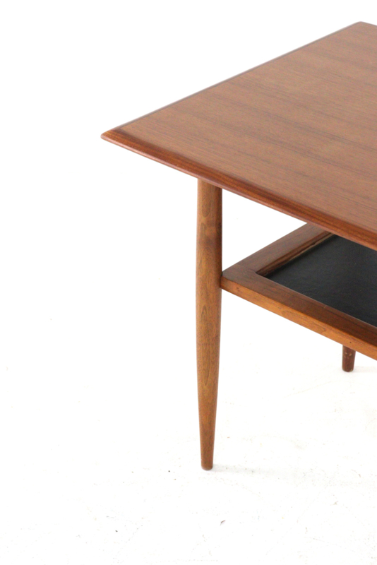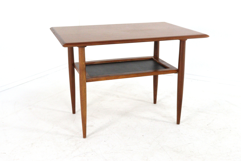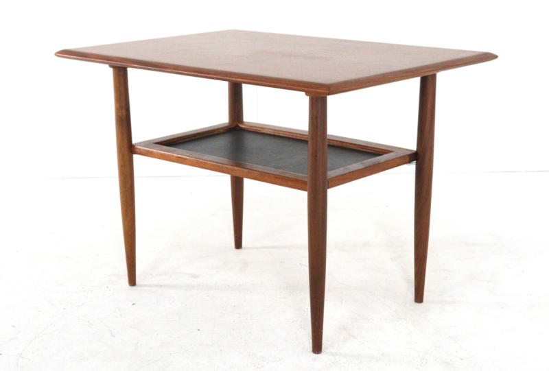 De bijzettafel zelf is een prachtig voorbeeld van hun stijl: slank, elegant en met die typische 'Mid-Century' uitstraling. Het blad is mooi van vorm en heeft verfijnde, schuine randen waardoor het bijna lijkt te zweven.