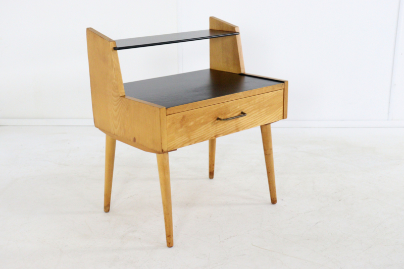 Uitgevoerd in niet te donkere fineersoort, en met bij de tijd passende sporen van gebruik is deze set van 2 nachtkastjes een ideale aanvulling voor je slaapkamer! De kastjes zijn ruim 70 jaar oud, en kennen hun eigen unieke patina en sporen die passen bij hun leeftijd, ze zijn nog degelijk en goed bruikbaar.