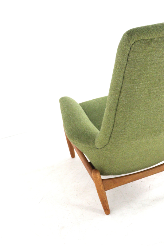 Dit typische mid century zitmeubel biedt een ongekend zitcomfort en geeft door zijn leuningen een soort gevoel van "geborgenheid" zonder beklemmend te zijn.