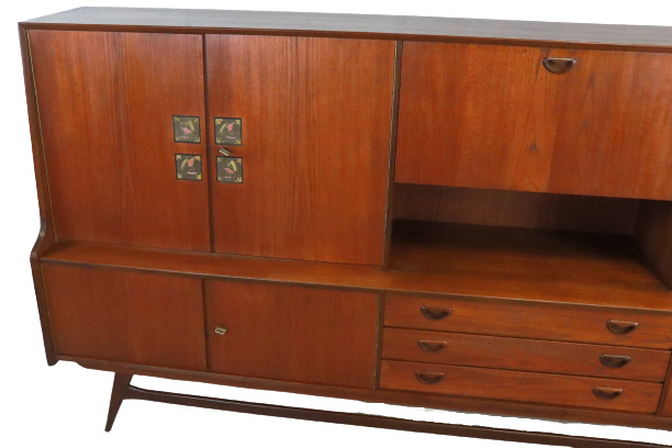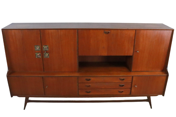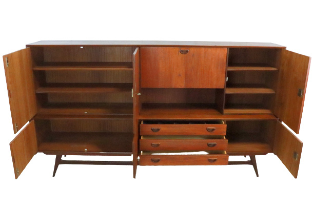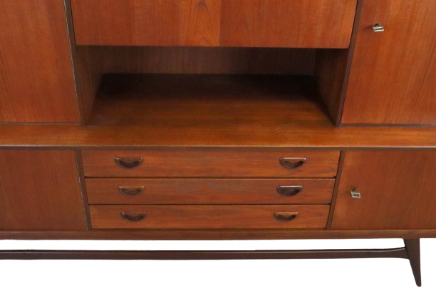 Een samenwerking tussen wat, in retrospectief, twee Mid Century grootheden waren leverde dit juweel van een meubel op. Louis van Teeffelen en Jaap Ravelli stonden aan de wieg van vele, nu zeer gewaardeerde en gezochte vintage stukken.